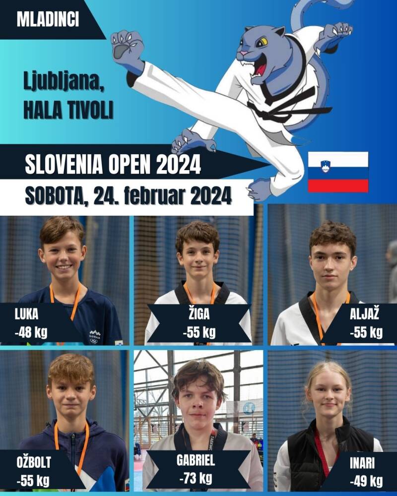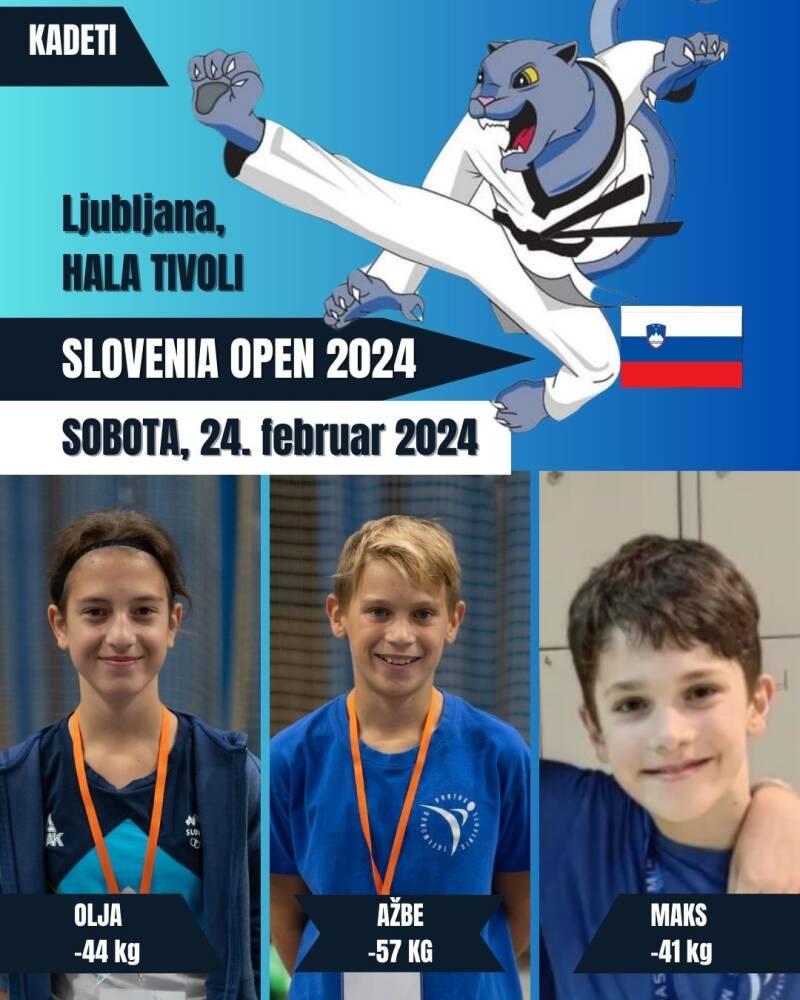 Ljubljana 24. in 25. 2. 2024 - Ta vikend je v Ljubljani potekal svetovni pokal Slovenia open, na katerem je nastopilo preko 1000 tekmovalcev iz več kot 40 držav. V soboto so nastopili kadeti in mladinci, včeraj pa člani. V vsaki starostni kategoriji so naši tekmovalci dosegli po eno bronasto odličje , žal pa se je kar tekmovalcev ustavilo tik pod stopničkami.